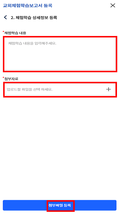 - 체험학습 상세 내용을 직접입력 또는 첨부파일 등록 중 선택해 주세요.