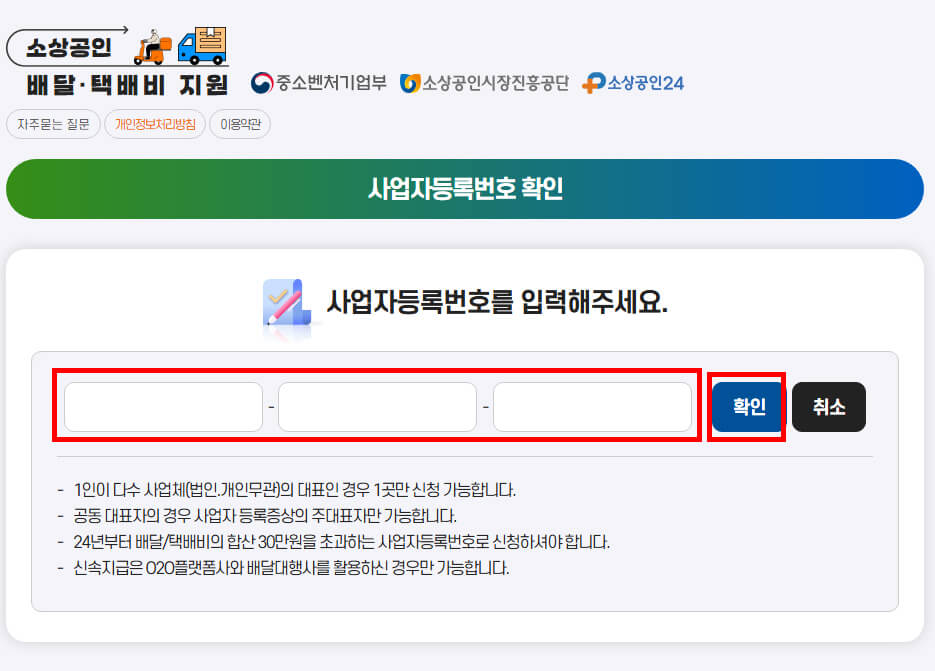 - 소상공인 배달·택배비 지원 홈페이지에 접속합니다.