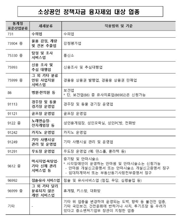 - 소상공인 정책자금 제외업종