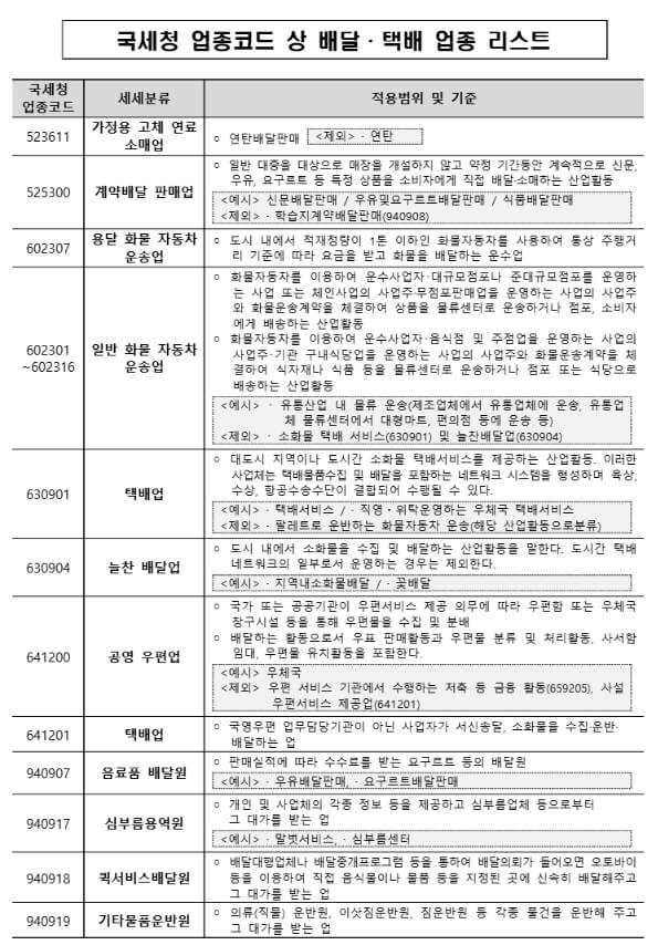 - 택배·배달을 주업으로 하는 업종