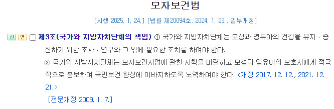 - 모자보건법 제3조(국가와 지방자치단체의 책임)